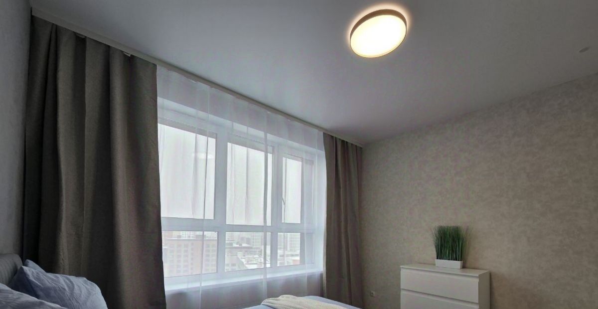 Спальня комфортных 12 м2 с двуспальной кроватью и комодом. Шторы блэкаут. Ничего лишнего для комфортна сна! Окна спальни выходят во двор.