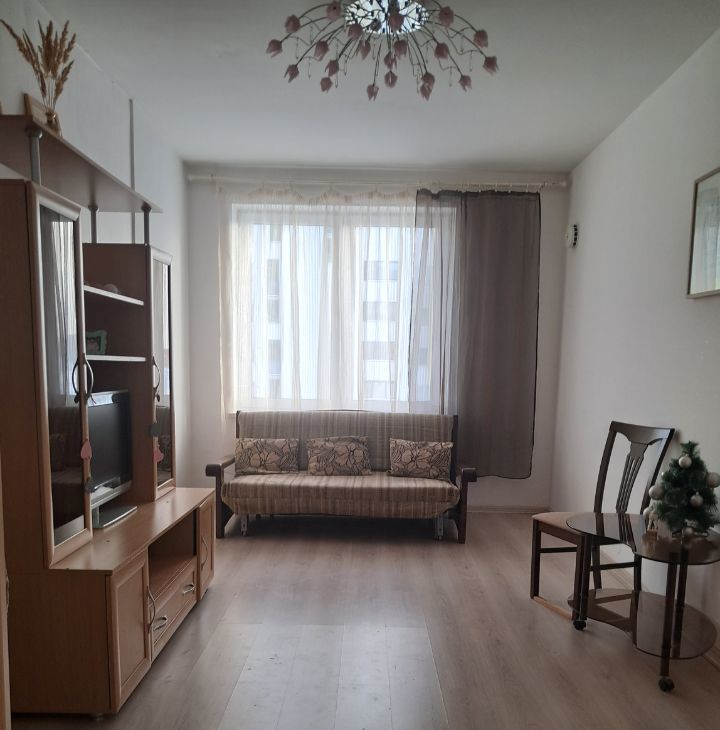 В квартире выполнен косметический ремонт, что создает светлую и уютную атмосферу. Планировка удобная: просторная кухня, совмещенный санузел и лоджия, окна которой выходят на улицу. В квартире остается вся необходимая мебель и техника, поэтому можно сразу заехать и жить.