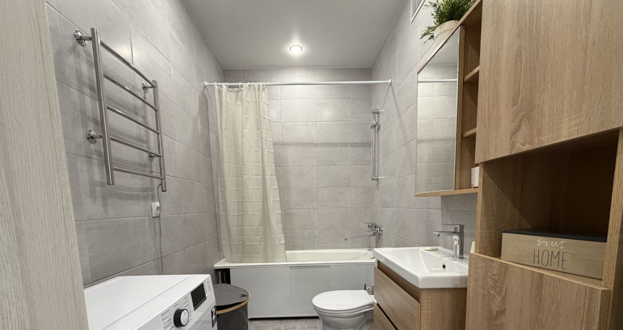 Квартира в новом, недавно сданном доме. Полностью укомплектована мебелью и техникой для комфортного проживания. Подключены интернет и домофон.