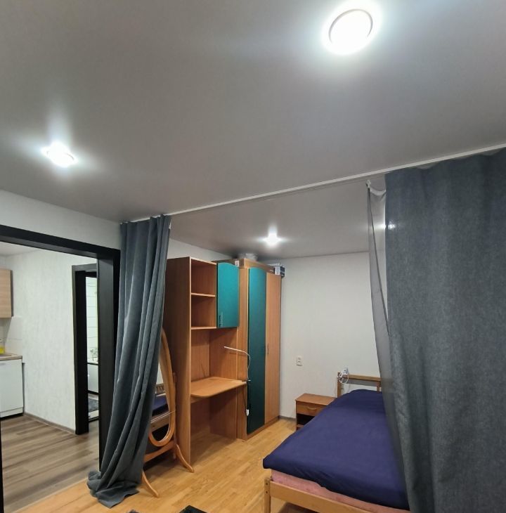 Большая кухня, комната зонирование на спальню и гостиную.