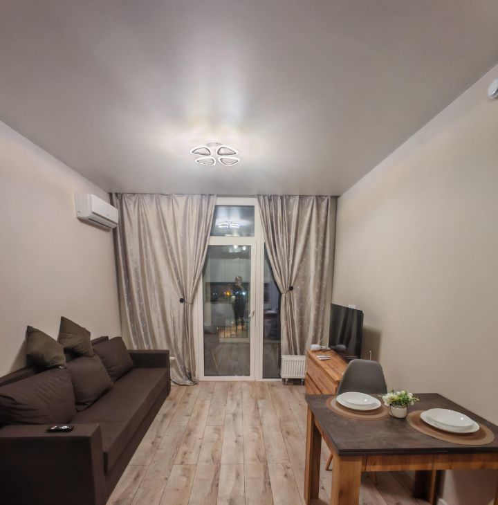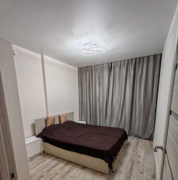 В спальне двухспальная кровать с хорошим матрасом,шторы блэкаут для отличного сна. В кухне-гостиной раскладной диван, который превращается в полноценное двуспальное ложе и также затемняющие шторы.