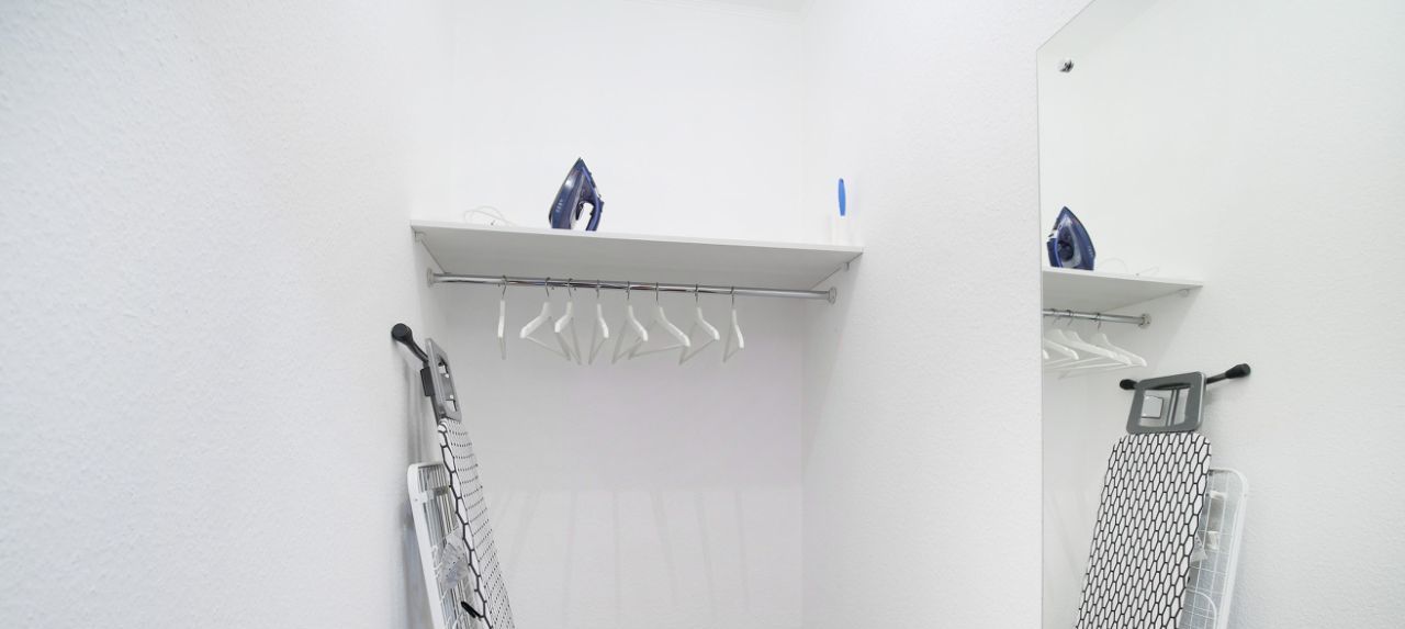 - Утюг, гладильная и сушильная доски обеспечивают удобство быта