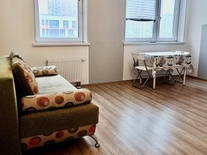 отличная евродвушка, одна из лучших планировка в доме: кухня-гостиная и комната по 19 метров. никаких маленьких комнат. окна во двор, не шумно. в ванной ремонт. есть парковка на крыше магазинов. мебель частично можем оставить.