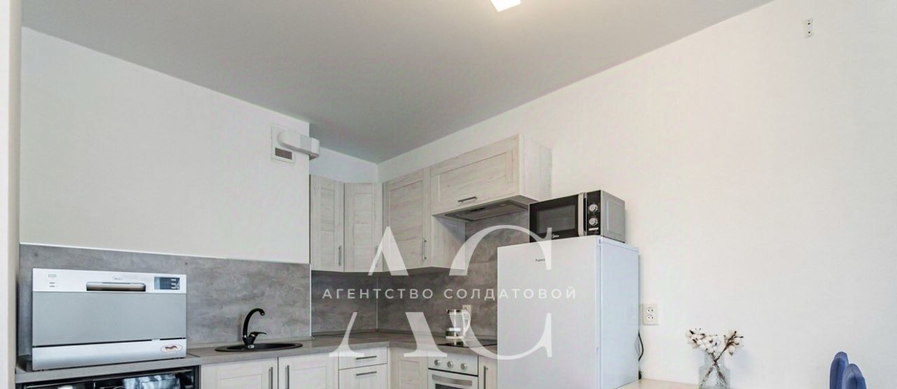 В квартире есть все необходимое для комфортной жизни: варочная панель, духовой шкаф, холодильник, стиральная машина, посудомоечная машина, микроволновая печь.