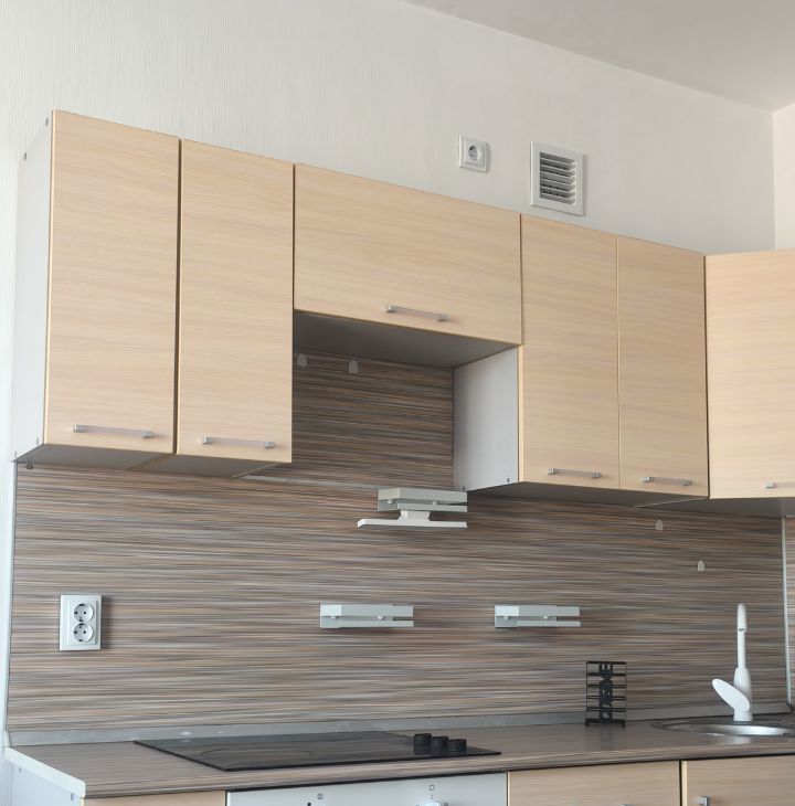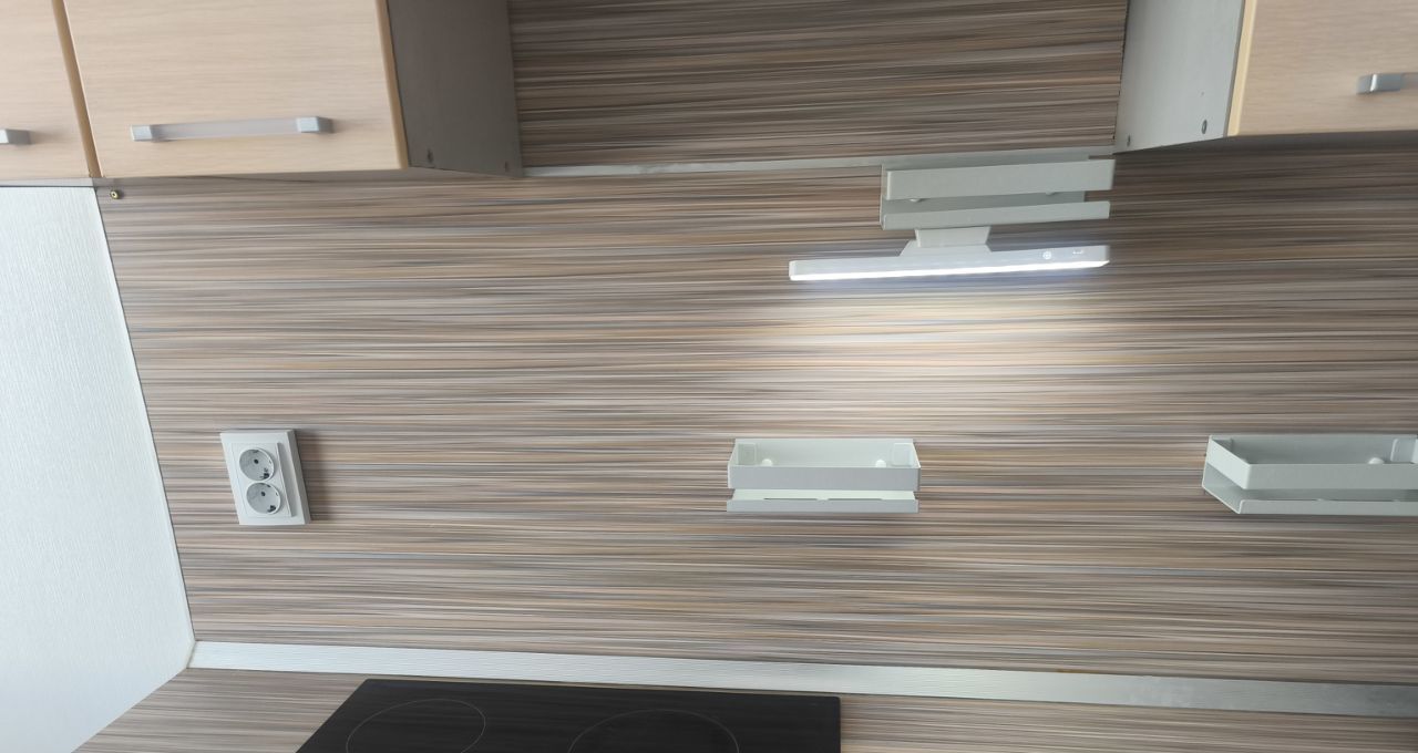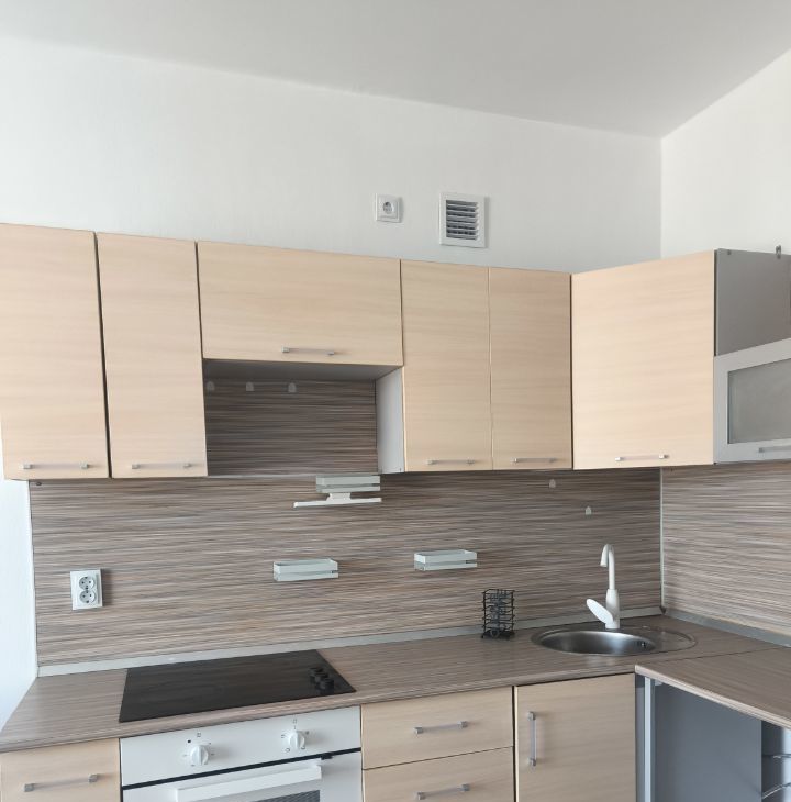 В квартире обставленная кухня-гостиная, с широким добротным диваном, кухня оборудована множеством шкафчиков, духовым шкафом и варочной поверзностью с удобными включателями- крутилками, есть подстветка.