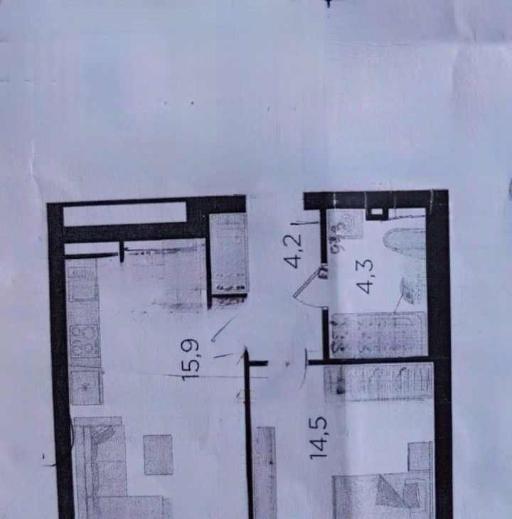 Вашему вниманию представлена современная однокомнатная квартира с уютной спальней и функциональной кухней.