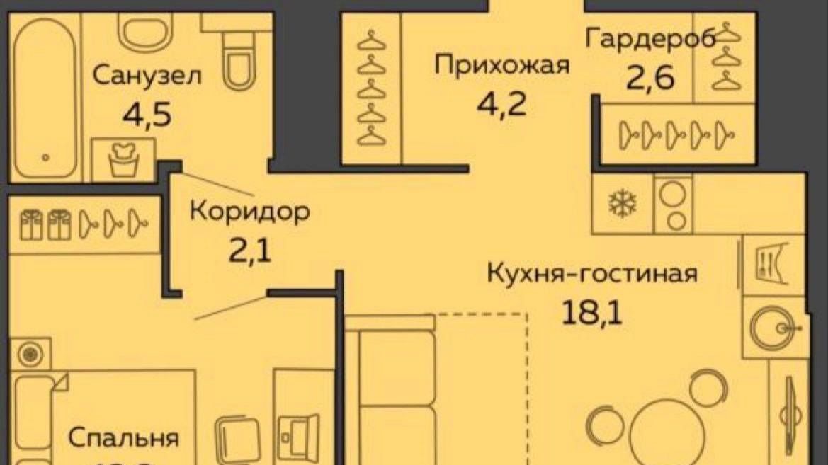 1-к кв. Свердловская область, Екатеринбург ул. 8 Марта, 181к6 (42.9 м²)