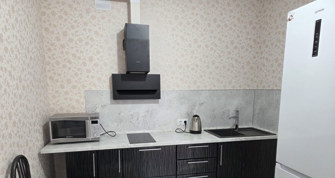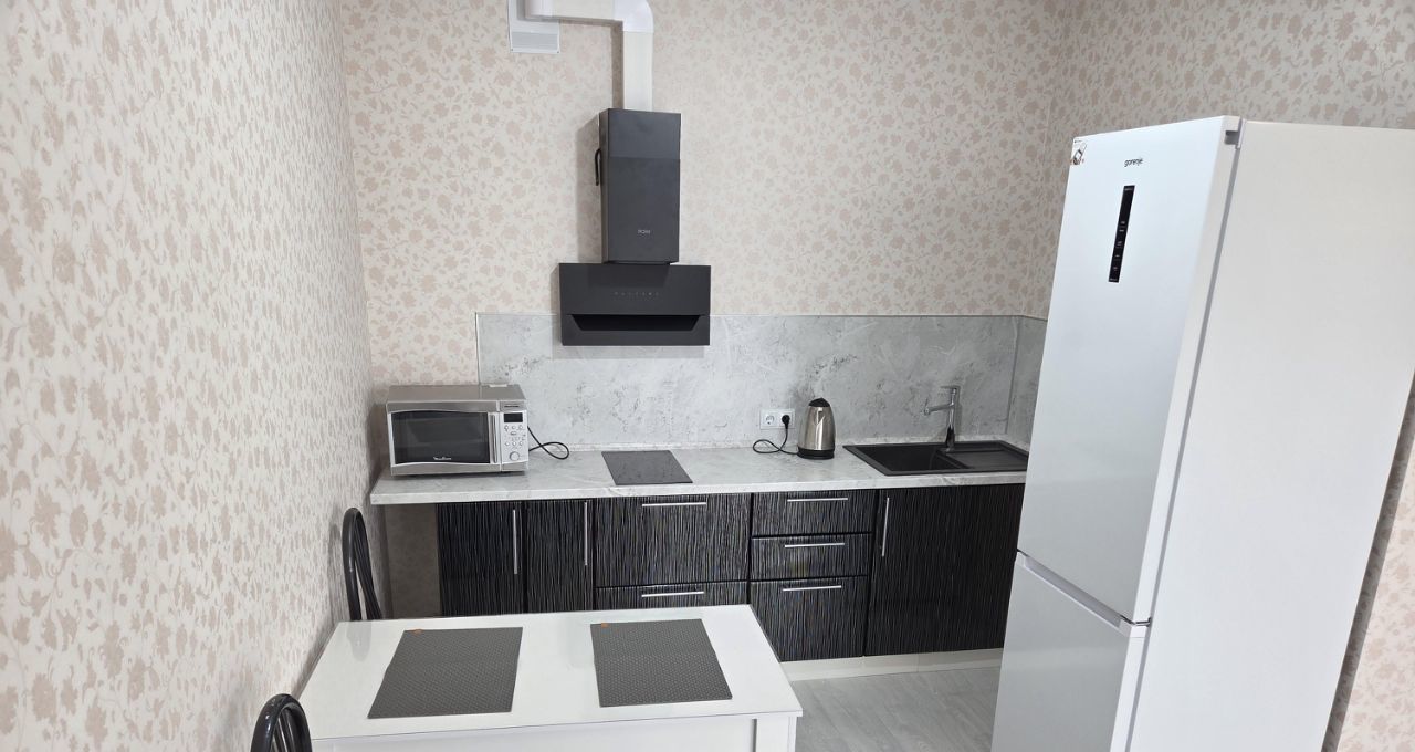 45 кв. м. с просторной кухней-гостинной с мебелью и техникой.