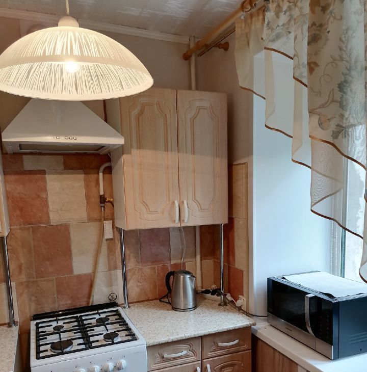 В квартире сделан косметический ремонт. Обстановка включает в себя всю необходимую мебель как на кухне, так и в комнате, а также технику: холодильник и стиральную машину. Большим плюсом является наличие балкона, где можно насладиться свежим воздухом. Ванная комната оборудована ванной, а окна выходят во двор, поэтому в квартире тихо и спокойно.