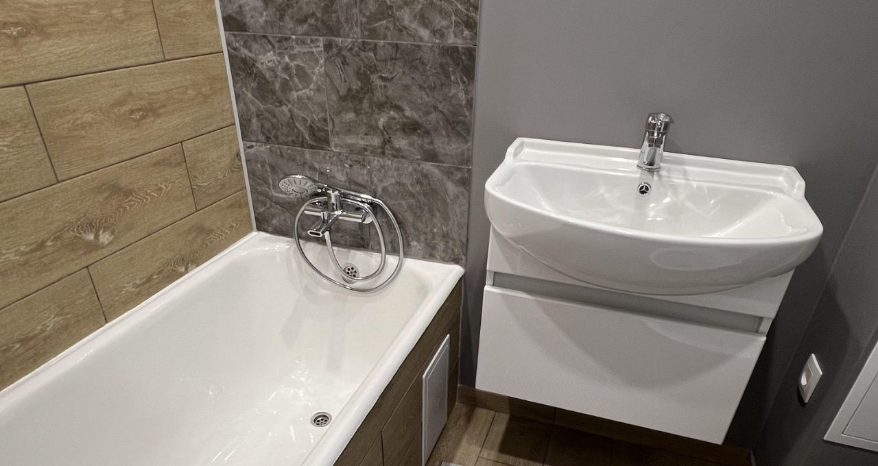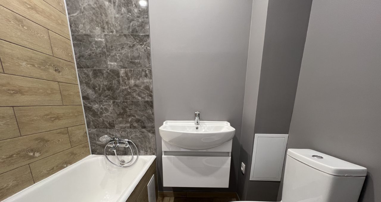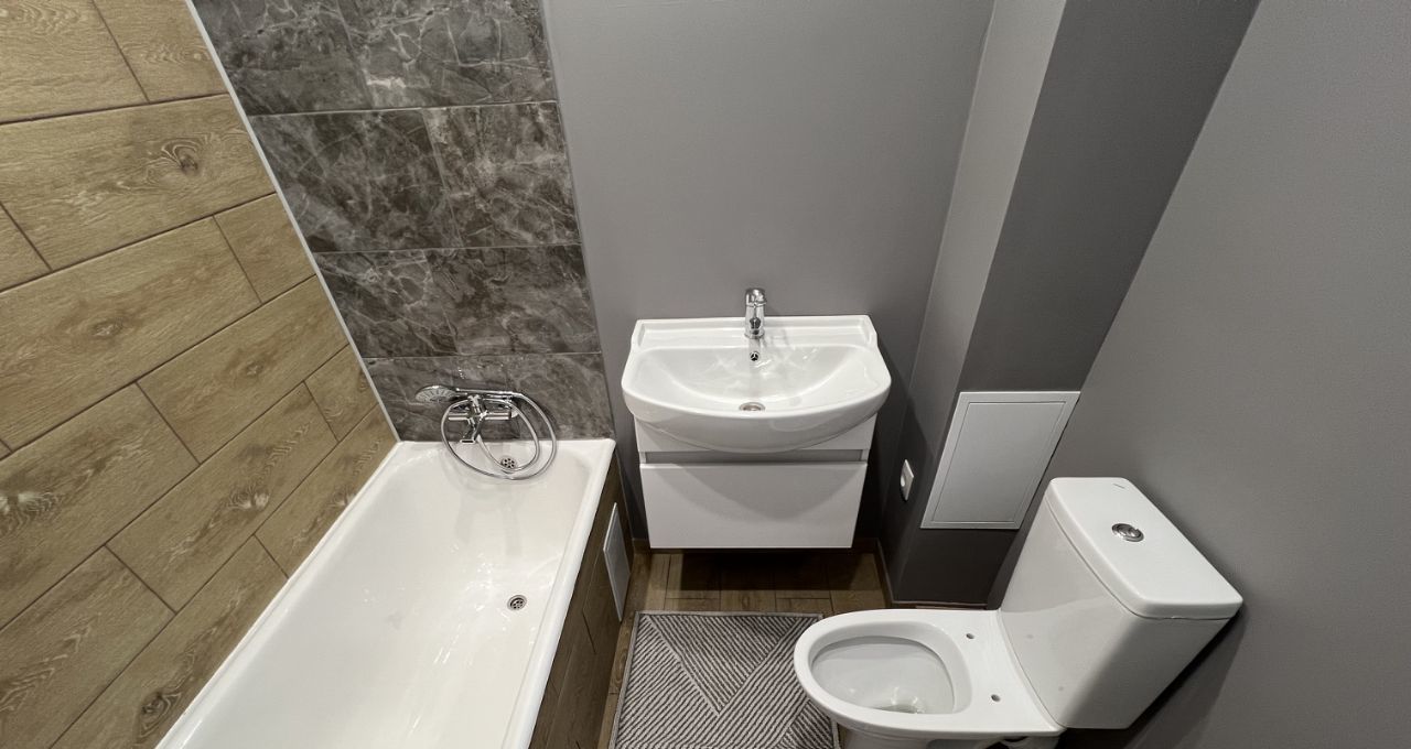В квартире выполнен современный, располагающий к созданию уюта ремонт. Новое напольное покрытие уложено без стыков и порогов между помещениями, ламинат теплого оттенка с фактурой дерева идеально гармонирует с цветами интерьера. Натяжные потолки по всей площади, скрытый карниз для штор, коридор и сан узел оснащены встроенным в потолок освещением. Все стены квартиры выровнены и окрашены в довольно нейтральные, но приятные тона моющейся краской (удобно мыть, легко и быстро можно перекрасить при обновлении интерьера) В санузле уложен керамогранит, смонтирован фартук для ванной, новые смесители, сантехника и мебель. Были заменены трубы горячего и холодного водоснабжения в кухне и в санузле, плюсом так же были заменены канализационные трубы. В квартиру проведен новый медный вводной кабель и смонтирована медная проводка, выполненная по современным стандартам, которой хватит для всех типов потребителей. Розетки и выключатели сделаны во всех необходимых местах. Абсолютно новый кухонный гарнитур, межкомнатные двери. Квартира практически полностью укомплектована, есть все самое необходимое и даже немного больше.