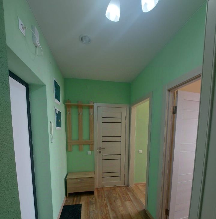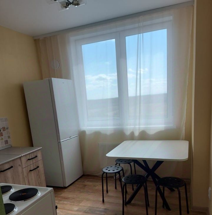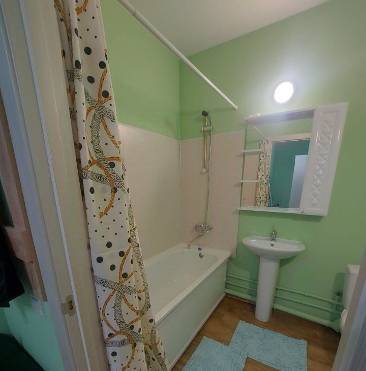 Квартира с качественным ремонтом, светлая и просторная. В наличии вся необходимая новая мебель: два спальных места, просторный шкаф. Из бытовой техники — стиральная машина, плита, холодильник. Есть все необходимое для жизни.
