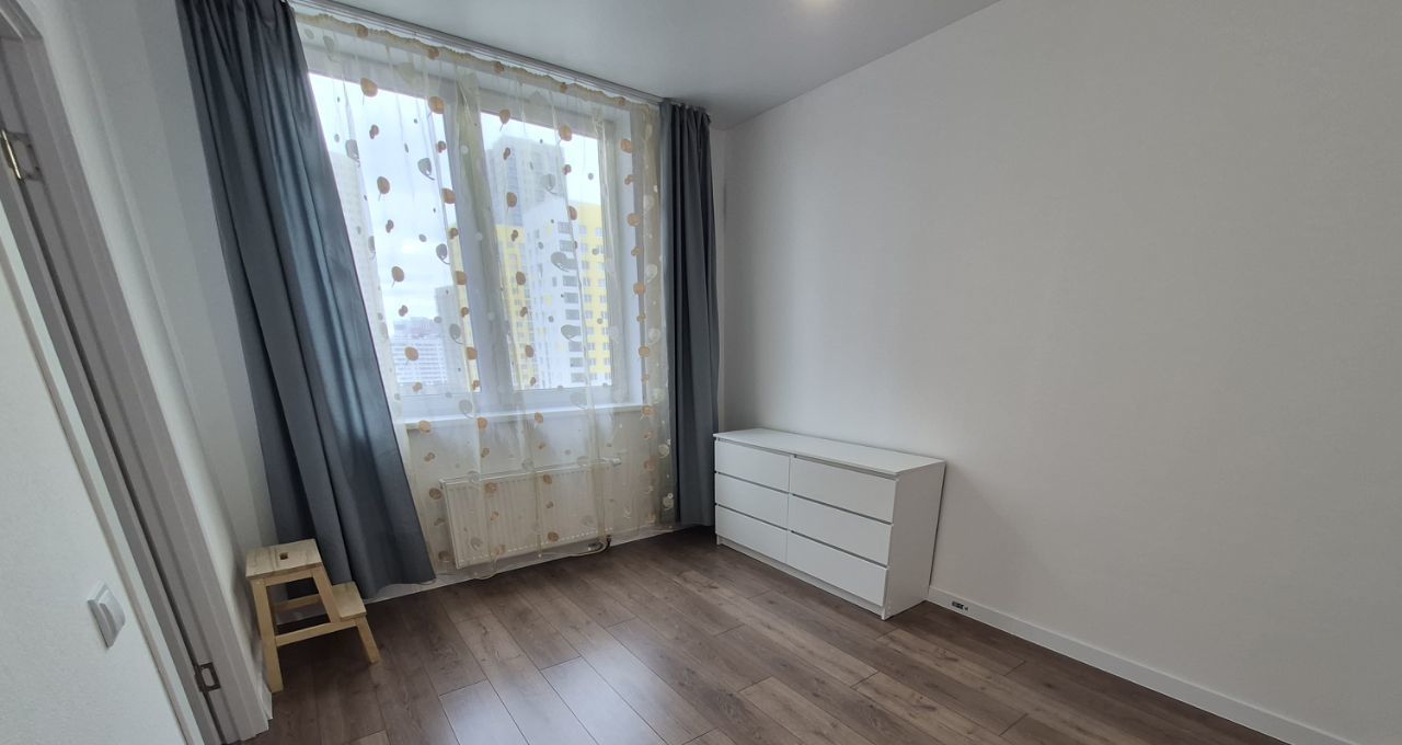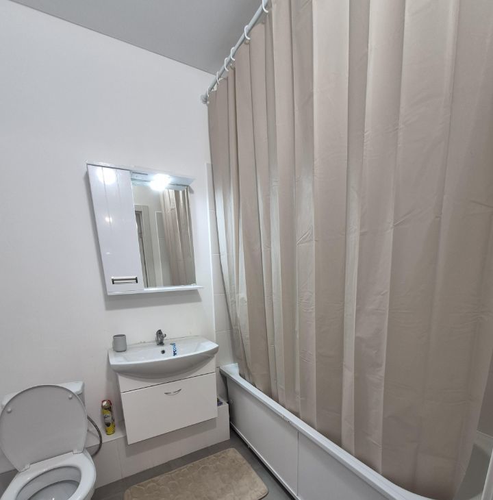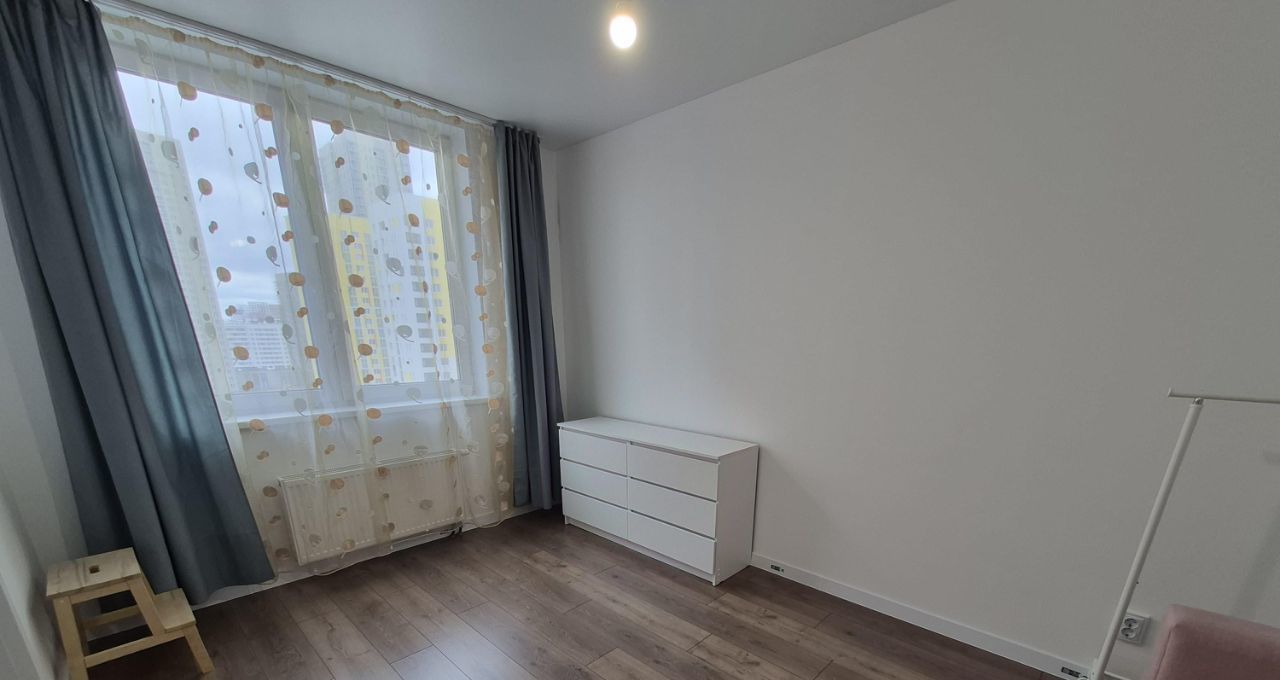 Квартира на 9 этаже, окна выходят во двор. Ремонт от застройщика, оборудованный санузел.