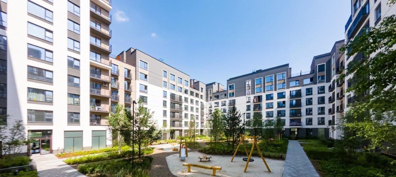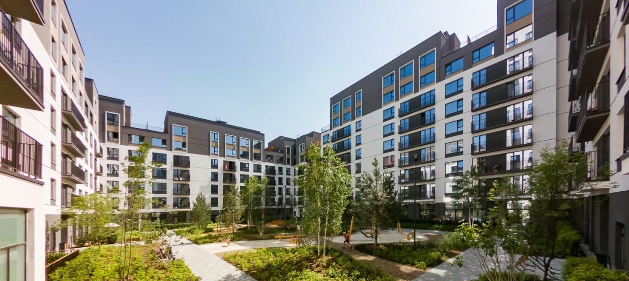 - Камерный двор закрыт от машин, спроектирован в стиле скандинавского натурализма и разделён на зоны. В одной расположены детские площадки, в другой — места для спорта и тихого отдыха взрослых.