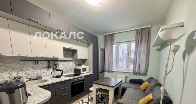 Сдаётся уютная однокомнатная квартира с евроремонтом в современном доме 2021 года постройки. Общая площадь квартиры — 38 кв. м, жилая — 15 кв. м, кухня — 13 кв. м. Квартира находится на 15 этаже 15-этажного монолитно-кирпичного дома с высокими потолками — 2,7 метра. Из окон открывается вид на улицу, а в доме есть пассажирский и грузовой лифты.