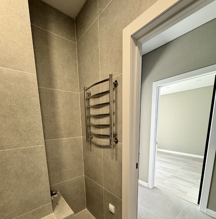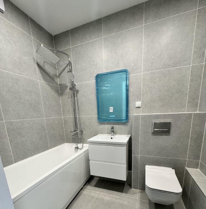 Ремонт и отделка "под ключ" включают в себя: ламинат, на стенах обои выкрашены в постельный оттенок. В зоне кухни на полу, в прихожей и в ванной керамогранит широкоформатный. Натяжные потолки с точечными светильниками. В санузле - инсталляция, ванная, смеситель, душ, полотенцесушитель, тумба с раковиной и зеркало с подсветкой.