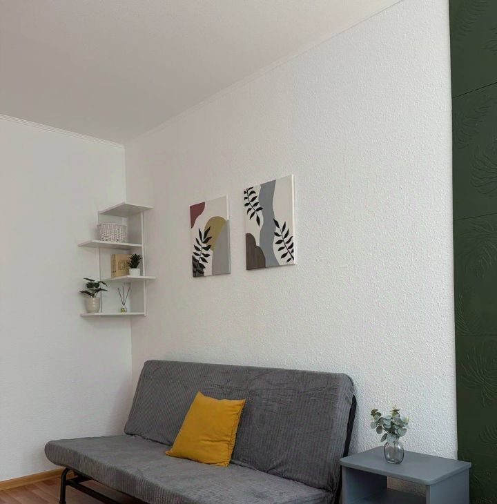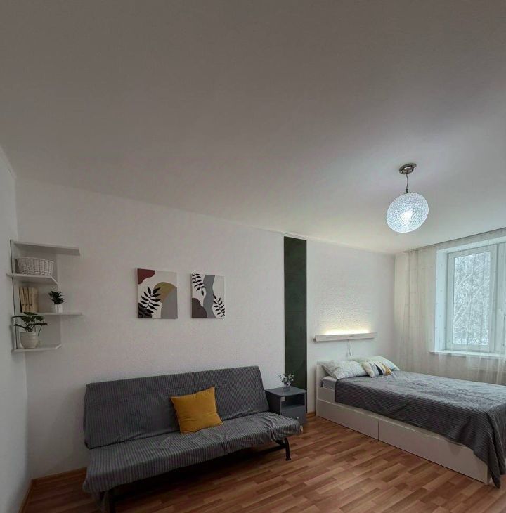 Квартира со свежим ремонтом, полностью готова к проживанию. В комнате: двуспальная кровать с новым ортопедическим матрасом и диван.