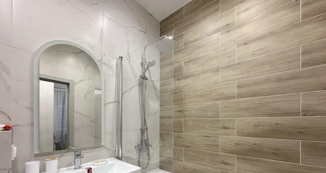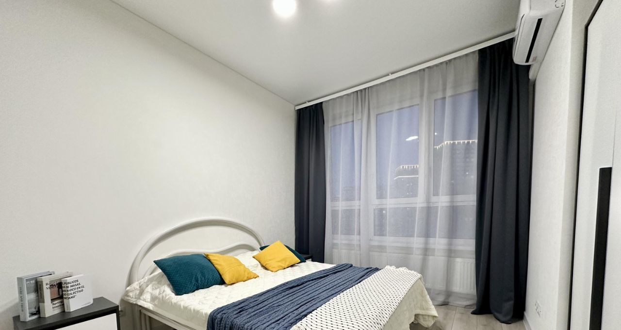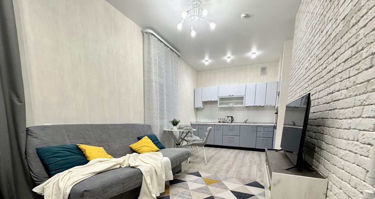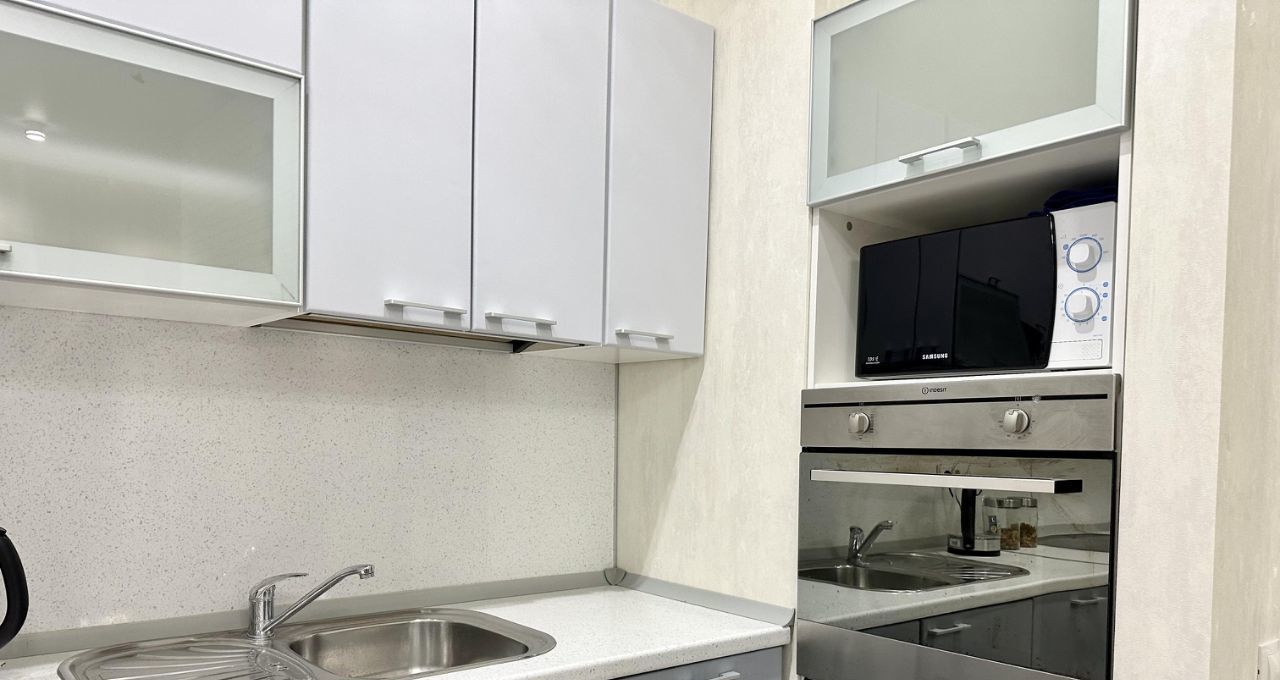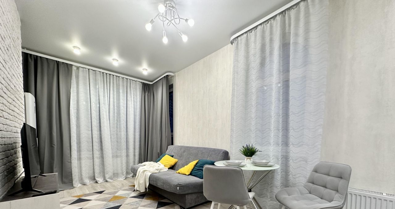 В квартире сделан дизайнерский ремонт, который подчёркивает её современный стиль и уют. В комнате и на кухне есть необходимая мебель. Для вашего комфорта установлена техника: кондиционер, холодильник, телевизор и стиральная машина. Санузел совмещённый, с ванной. Окна выходят как на улицу, так и во двор, что даёт возможность наслаждаться разнообразными видами.