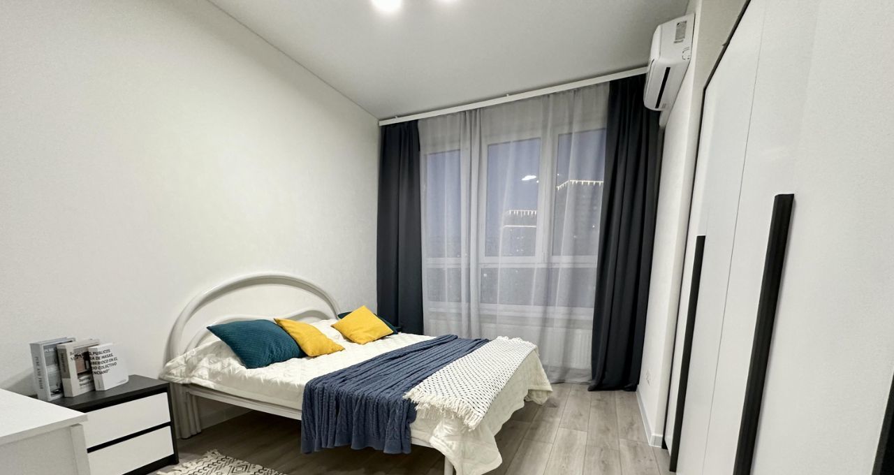 Сдаётся просторная однокомнатная квартира в новом доме 2023 года постройки. Общая площадь — 40 квадратных метров, кухня — 16 кв. м. Квартира расположена на 16 этаже 32-этажного здания. До станции метро Чкаловская всего 17 минут пешком.