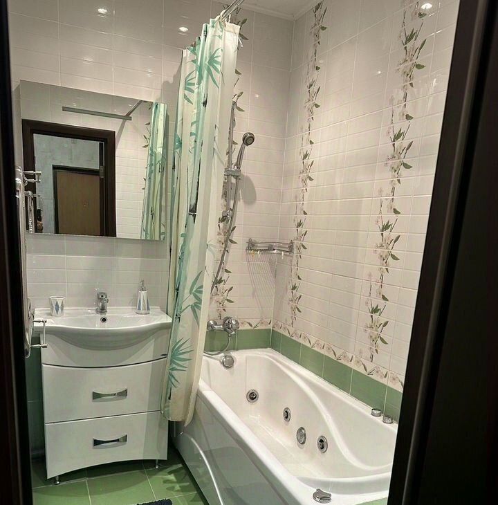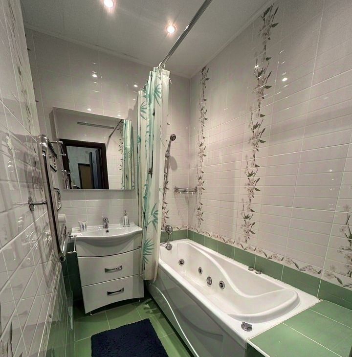 В ванной комнате установлена ванна с джакузи. Раздельный санузел добавляет удобства.