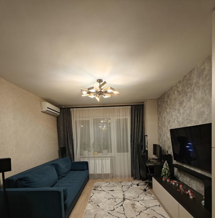 Продаю квартиру формата евродвушка с функциональной планировкой. Большая кухня-гостиная с функционалом отдельной комнаты (20,2 кв.м.) и спальня (11,4 кв.м.). Большой балкон с панорамными окнами, не входит в общую площадь квартиры (6,6 кв.м.). Высота потолков - 2,6 м. Квартира теплая, проблем с горячей водой нет. В квартире сделан капитальный ремонт: перезалиты полы, сделана новая разводка по электрике и большое количество розеток. Для ремонта использованы качественные отделочные материалы, продумана система хранения. Будущему владельцу остаётся кухонный гарнитур, стенка, шкаф-купе в прихожей и система хранения в кладовой.