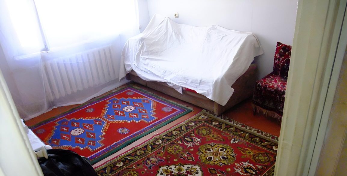 Описание: 26,5м2, комната 15м2, 1эт в 5 эт.. Из мебели-есть шкаф, диван, кухня, стулья 2 шт, комод, зеркала, холодильник, стир машина, ковры на полу.