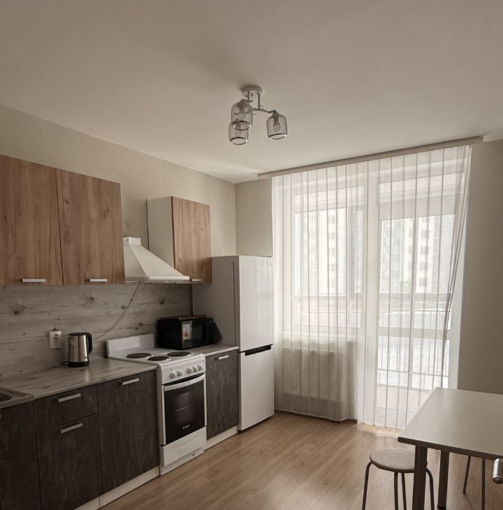 - светлая кухня 11м.кв (есть вся необходимая техника: холодильник, чайник, микроволновка, плита, вытяжка и посуда на первое время)