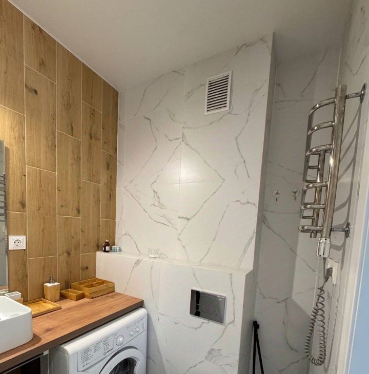 + В ванной комнате плитка.