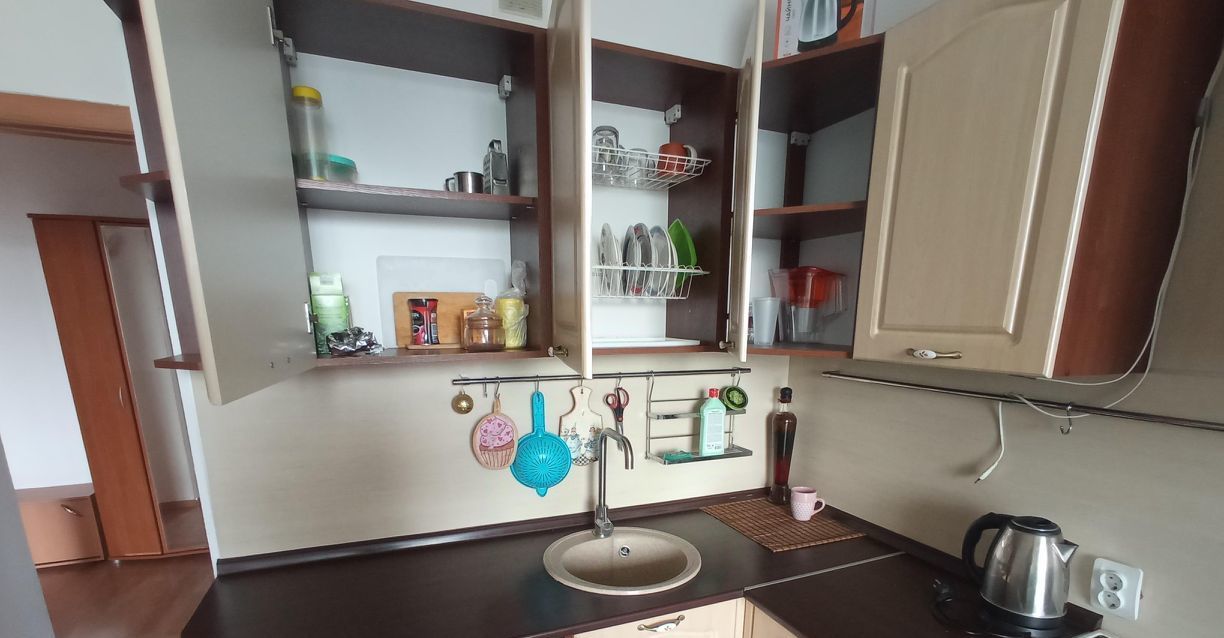 • Большая просторная кухня-гостиная-столовая (16 кв.м ), что позволяет ее использовать и как кухню и как комнату + 1 отдельная изолированная комната - спальня.