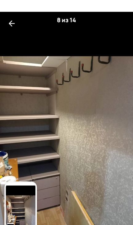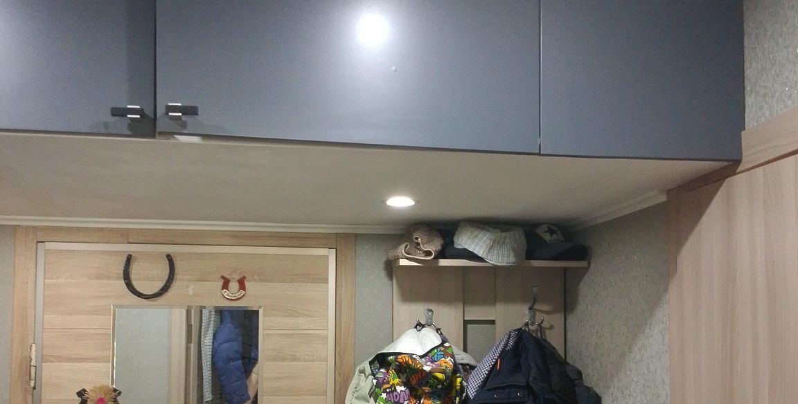 В прихожей моющие обои, на полу линолеум, есть дополнительное место для хранения - антресоли. Имеется кладовая для хранения вещей.