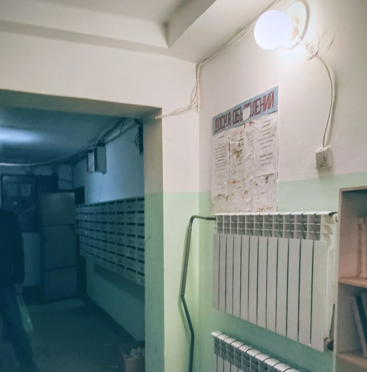 На лестничной площадке общий коридор огорожен, у квартиры есть возможность оставить строительные материалы, самокаты или велосипеды, либо хранить овощи.