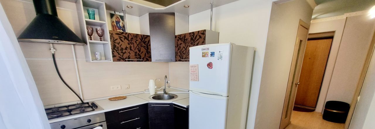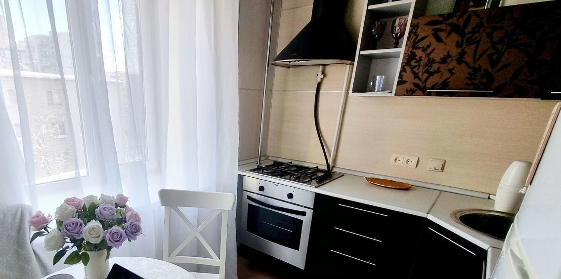 В квартире есть всё для комфортного проживания: два больших вместительных шкафа, кухонный гарнитур, двухспальная кровать, комод, духовой шкаф, поверхность, стиральная машина, телевизор.