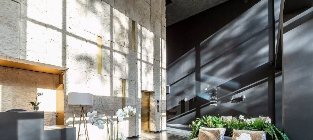 Парадный вестибюль с потолками высотой в два этажа с дизайнерской отделкой. Стойка ресепшн, служба консьержа работает в режиме 24/7 . В холле комфортные стильные зоны ожидания с мягкой мебелью, гостевые санузлы. Есть спортзал для жильцов.