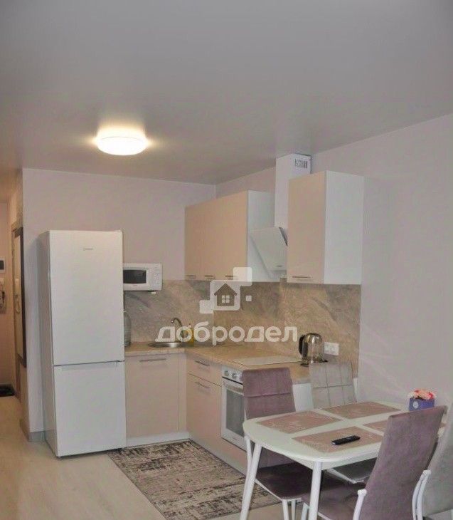 Есть вся необходимая мебель и техника: вместительная гардеробная-постирочная, там установлена стиральная машинка и хранится мелкая бытовая техника: пылесос, утюг и т.п., на кухне раскладывающийся диван, кухонный гарнитур со встроенным духовым шкафом и варочной поверхностью, холодильник, вытяжка, микроволновка, обеденный стол, телевизор! В комнате диван-кровать и комод!