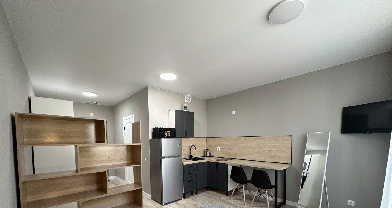 Стильная современная просторная светлая студия в новом жилом комплексе "Дом на Ясной". В квартире есть вся необходимая мебель для проживания. Качественная кухня, мебель. Все новое. Установлен фильтр для воды. Квартира ждет своих жильцов для комфортной жизни. Большая придомовая парковка за шлагбаумом. Залог 30 тр.