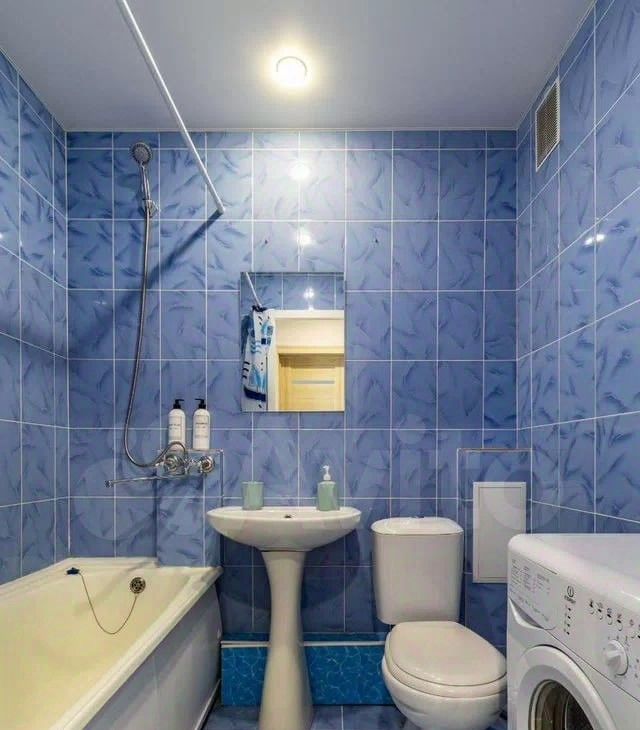 Санузел: полноценная ванная и стиральная машина.