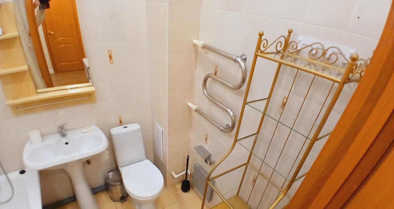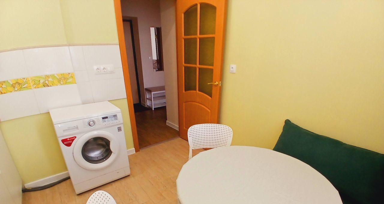 В квартире выполнен свежий ремонт, что создает приятную атмосферу для проживания. Кухня оборудована необходимой техникой: плитой, холодильником и стиральной машиной. Здесь же находится обеденный стол и сиулья,небольшой диванчик,что позволяет комфортно проводить время на кухне. В квартире есть отдельное помещение - гардеробная. Дом оборудован наземной парковкой, поэтому можно без проблем найти место для автомобиля. Инфраструктура района развита на хорошем уровне.