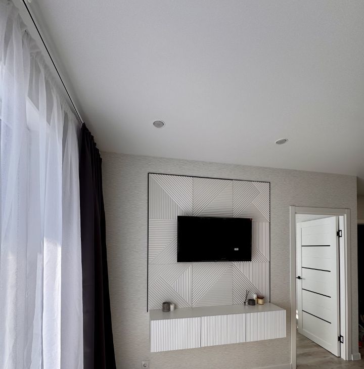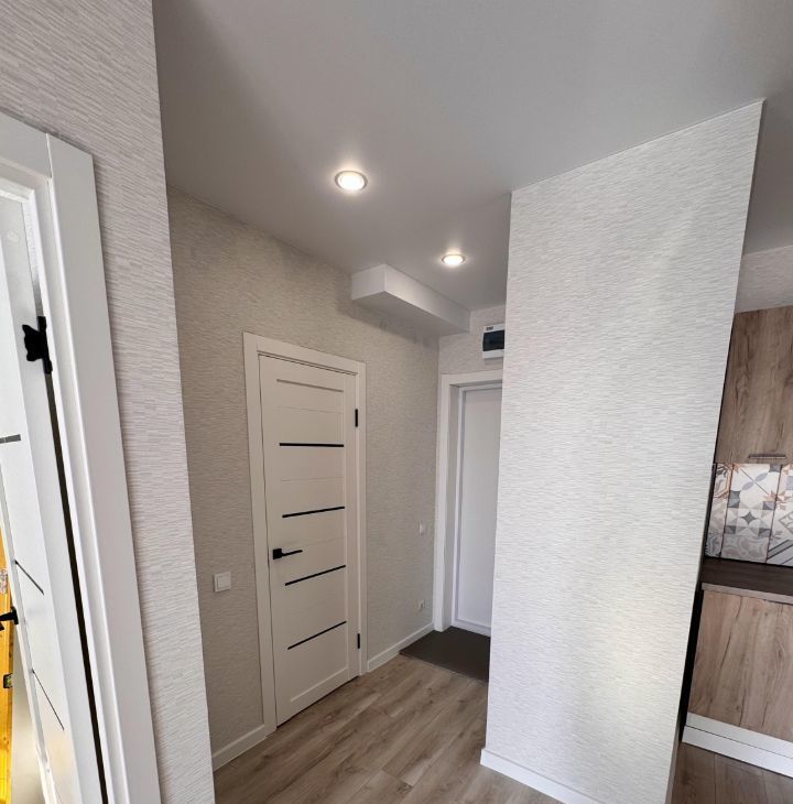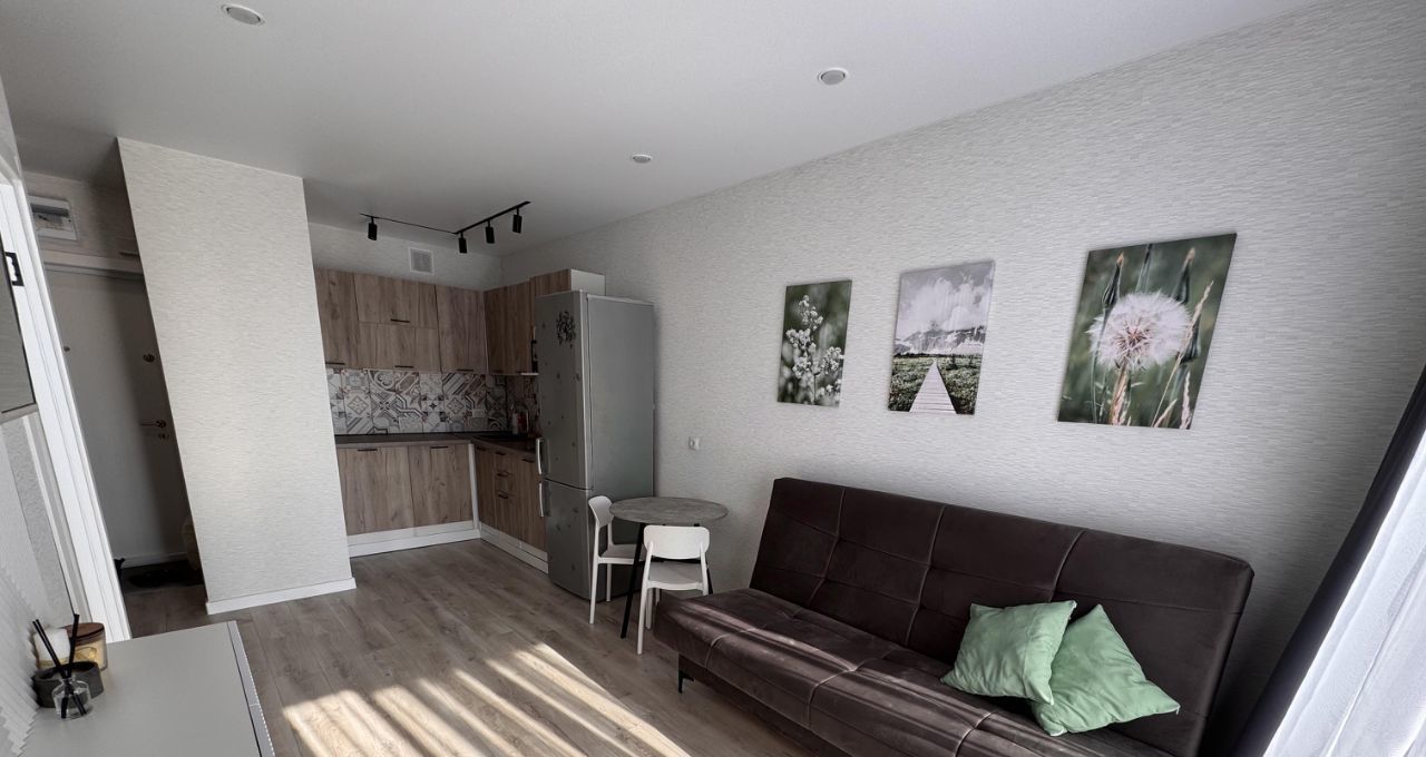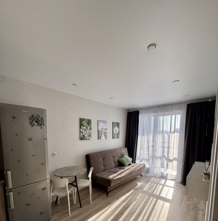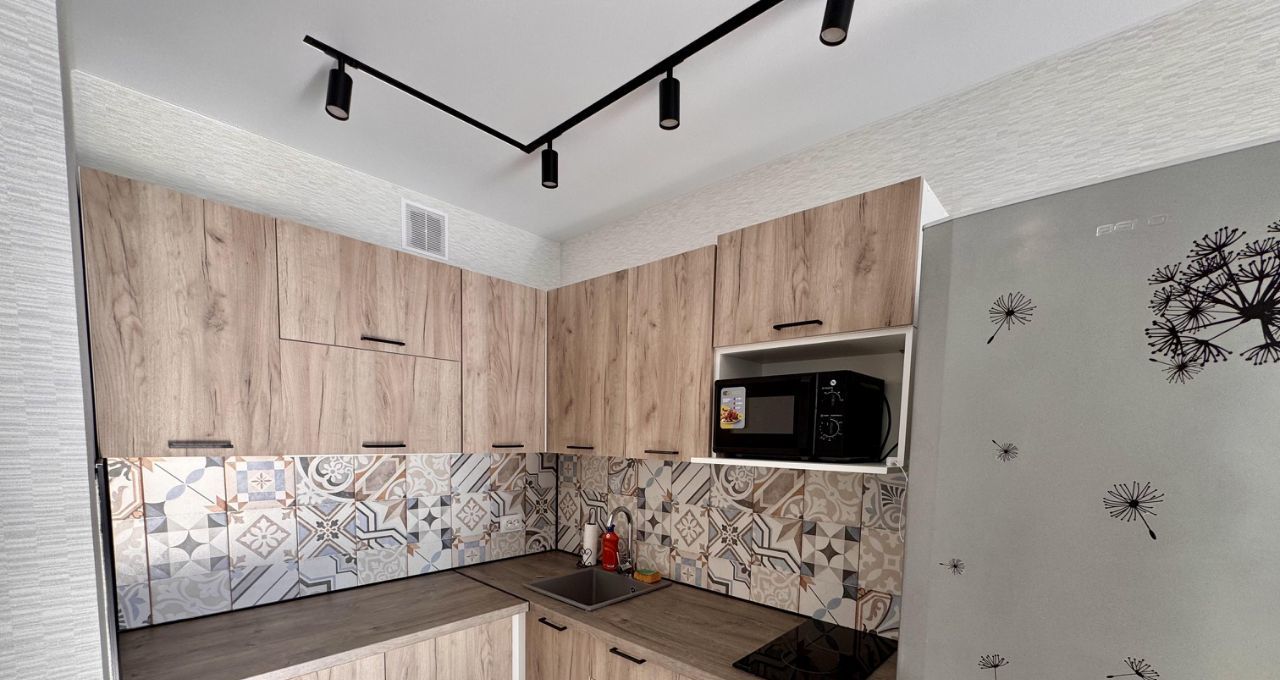 Квартира расположена на 15 этаже монолитного дома, построенного в 2025 году. В доме четыре грузовых лифта. Просторная кухня оснащена необходимой бытовой техникой, включая холодильник и микроволновую печь. В комнате установлен телевизор и удобный диван, а также вместительные шкафы для хранения вещей.