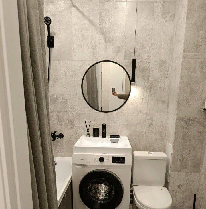 В квартире: шкаф для одежды, 1 диван. Такжe установлена современная бытовая техника, включая холодильник и стиральную машину. Санузел совмещенный, оформлен в светлых тонах.вся мебель и техника абсолютно новые!!!