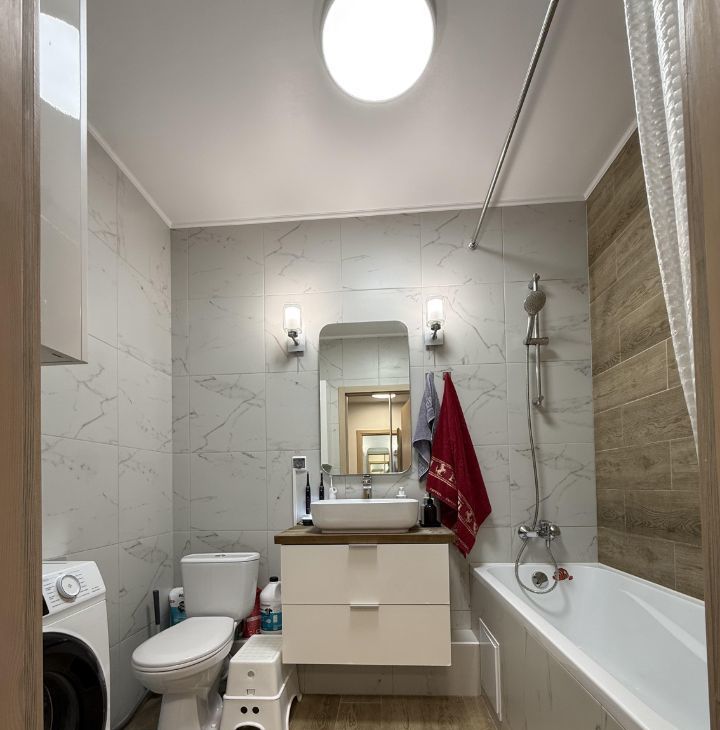 Для дополнительного уюта в ванной комнате установлен теплый пол.