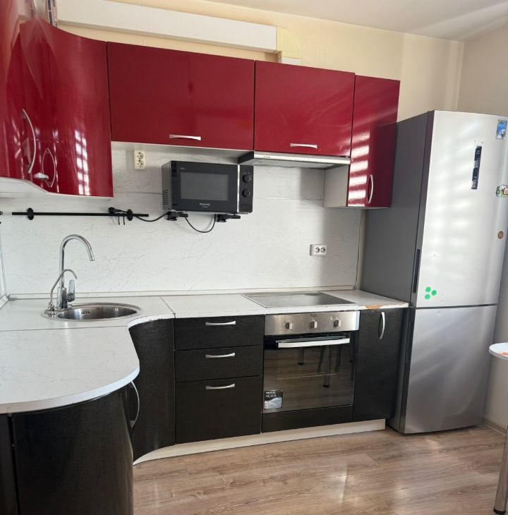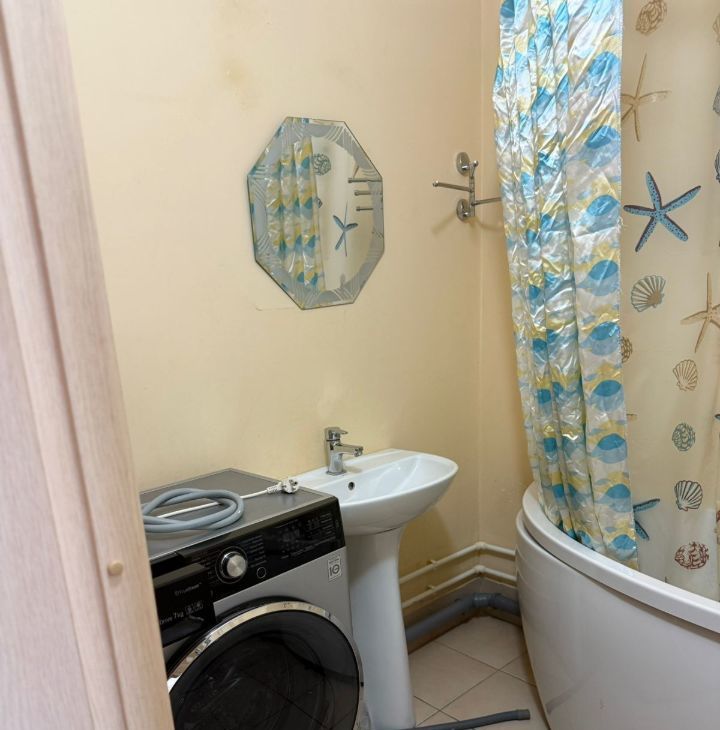В квартире выполнен косметический ремонт. Пространство обставлено мебелью, что создает атмосферу уюта и комфорта. Кухня оснащена необходимой мебелью и техникой, включая кондиционер, холодильник и стиральную машину. Ванная комната оснащена ванной, что позволяет расслабиться после долгого дня. Санузел совмещённый.
