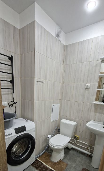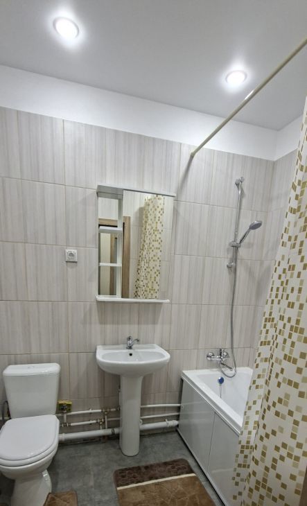В квартире сделан косметический ремонт, что создает атмосферу уюта и комфорта. В комнате и на кухне имеется вся необходимая мебель. (кухонный гарнитур, холодильник, обеденный стол, стулья, диван 1.4 м. В ванной комнате установлена стиральная машина и есть ванна. Планировка квартиры предусматривает наличие одной лоджии, где можно провести время на свежем воздухе. В спальне установлен платяной шкаф, двухспальная кровать с матрасом.
