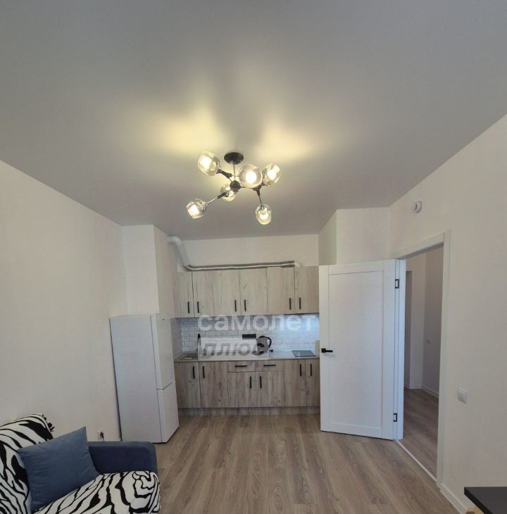 Полностью оборудованное пространство: кухонный гарнитур и обеденная зона; удобный диван и двуспальная кровать; функциональная прихожая.