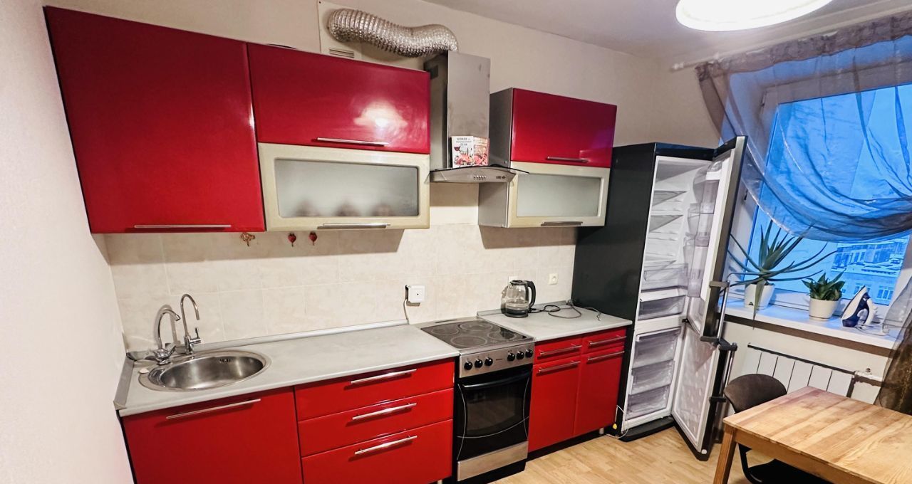 Сдается большая однокомнатная квартира. Общая площадь квартиры — 44 кв. м, она расположена на 8 этаже 10-этажного здания. Жилая площадь составляет 21 кв. м, а кухня — просторные 12 кв. м.