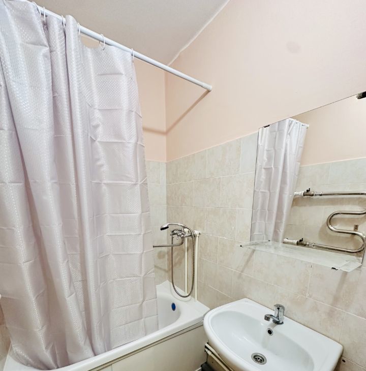 В квартире выполнен косметический ремонт. Просторная кухня оборудована всей необходимой мебелью и техникой: холодильником, телевизором, утюг, чайник и вся необходимая посуда. В комнате также есть мебель для комфортного проживания. Ванная комната оборудована ванной, а значит, можно расслабиться после рабочего дня. В туалете установлена стиральная машина.