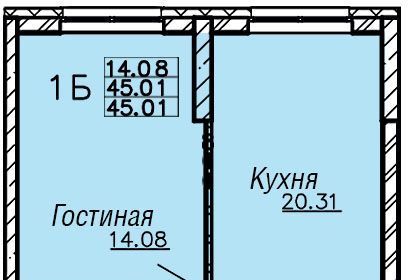 1-к кв. Свердловская область, Екатеринбург ул. Николая Островского, 1 (44.6 м²)