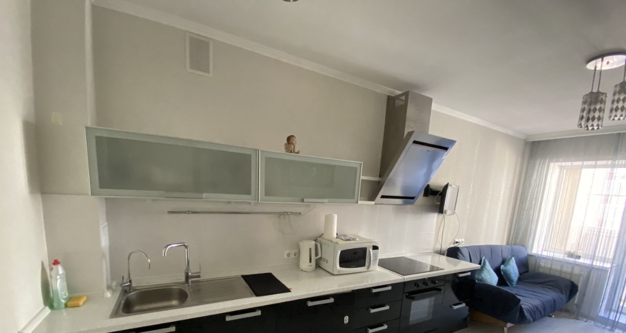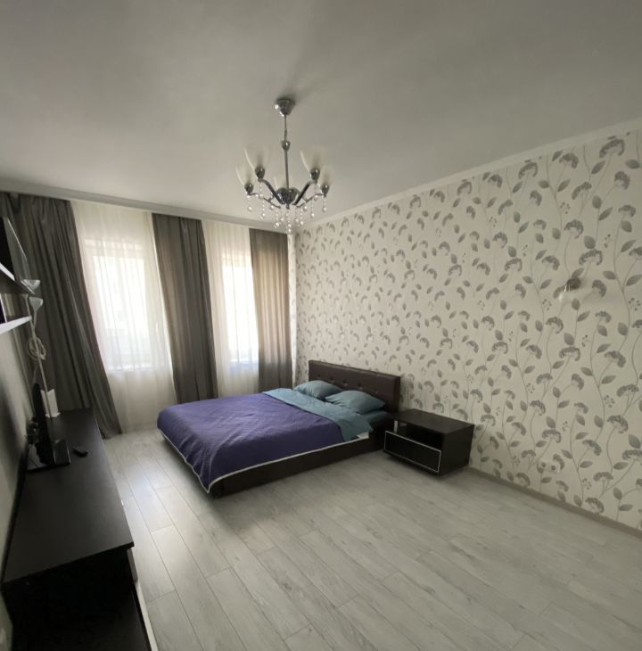 В квартире выполнен хороший ремонт.В квартире имеется вся необходимая бытовая техника: телевизор, холодильник, варочная панель, духовой шкаф,посудомоечная машина Bosch , стиральная машина BoschВ квартире всё продумано для комфортной жизни. Большая кухня-гостиная позволяет разместить ещё одно спальное место.