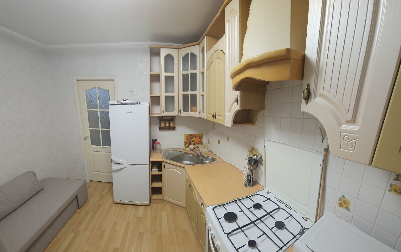 В квартире есть вся необходимая мебель два дивана, места для хранения, кухонный гарнитур. Техника: микроволновая печь, чайник, плита, холодильник, стиральная машина, телевизор, пылесос, посуда. Два Спокойная атмосфера, ухоженный дом. Закрытая территория с детской площадкой, есть место для стоянки машины.