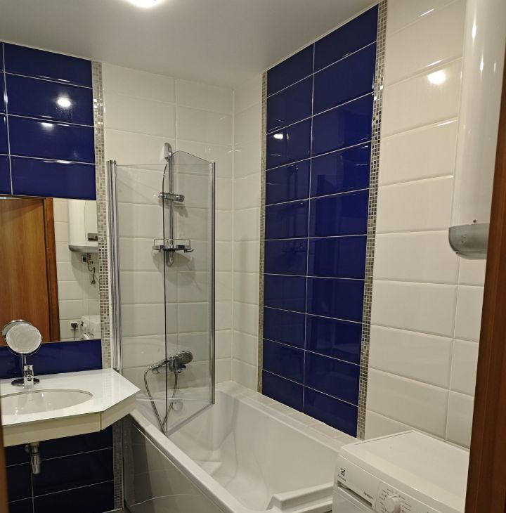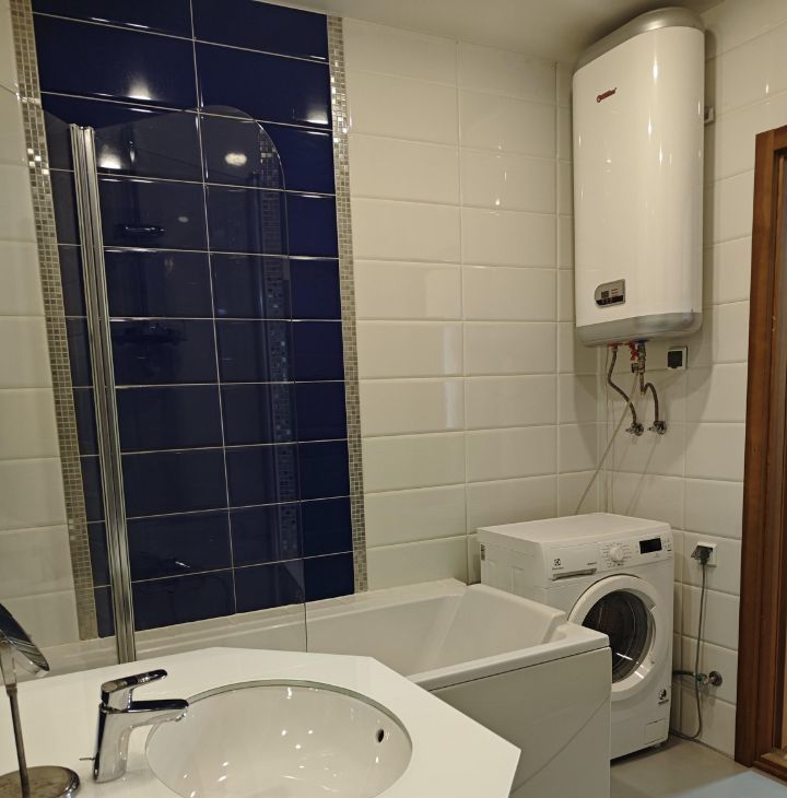 Кухня оснащена всем необходимым: холодильник, плита, духовка, вытяжка, чайник, микроволновая печь, посуда для приготовления и употребления пищи, обеденная зона. Ванная комната совмещенная, с современной сантехникой и стиральной машиной.