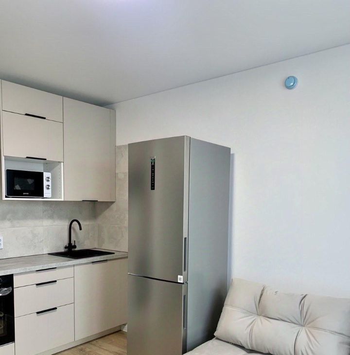 Кухня(14,3 кв.м) - Холодильник,микроволновая печь ,встроенная кухня,уютный диван..(обеденный стол и стулья ожидаем).