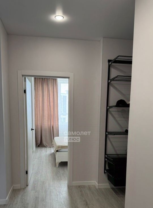 Полностью меблирована: диван, зона ТВ, кровать и гардеробная.